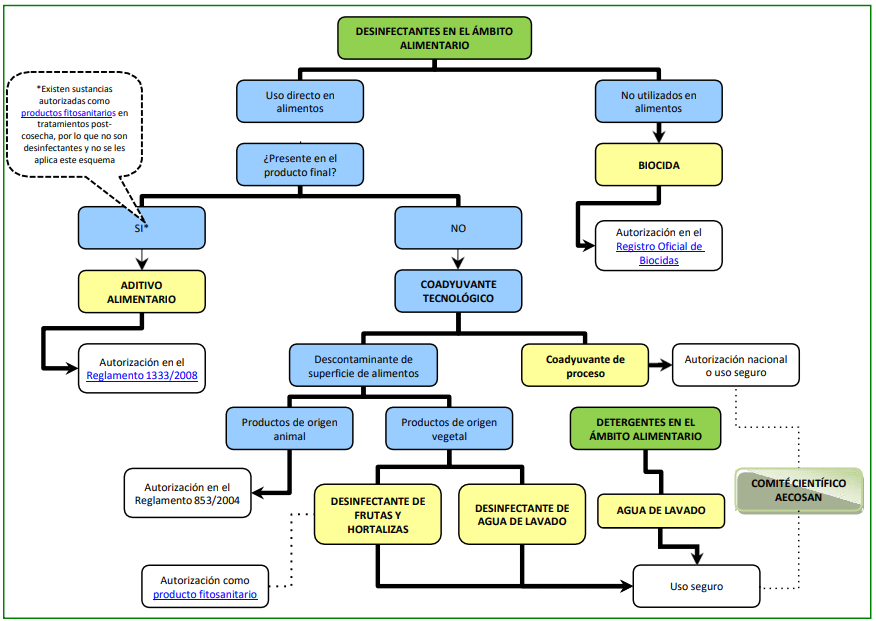 Figura 2. Esquema resumen de los posibles marcos legislativos de aplicación relativos a desinfectantes y detergentes en el ámbito alimentario
